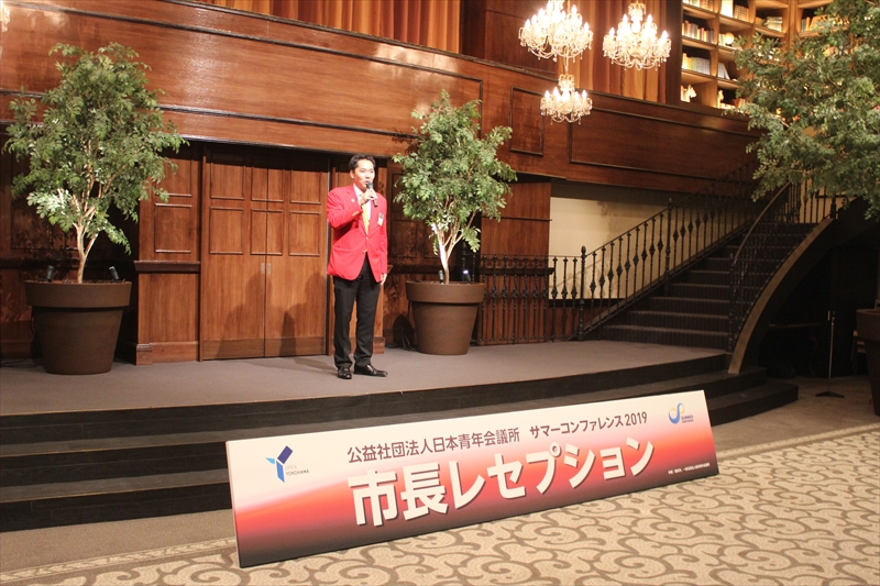 (公社)日本青年会議所の最大の運動発信の場であるサマーコンファレンスが、いよいよ横浜の地にて開催されます。開催に先立ちまして本年度も横浜市に様々なご協力を頂いていることに対し感謝の意を表すと同時に、今後も継続してご協力を頂ける様「サマーコンファレンス2019市長レセプション」が盛大に横浜迎賓館にて開催されました。