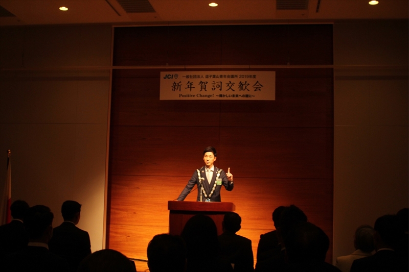 『Positive Change!~輝かしい未来への礎に~ 』のスローガンのもと第56代理事長阿部晋也君の心打つ所信表明でした。 (一社)逗子葉山青年会議所の皆様、本年も宜しくお願い申し上げます。